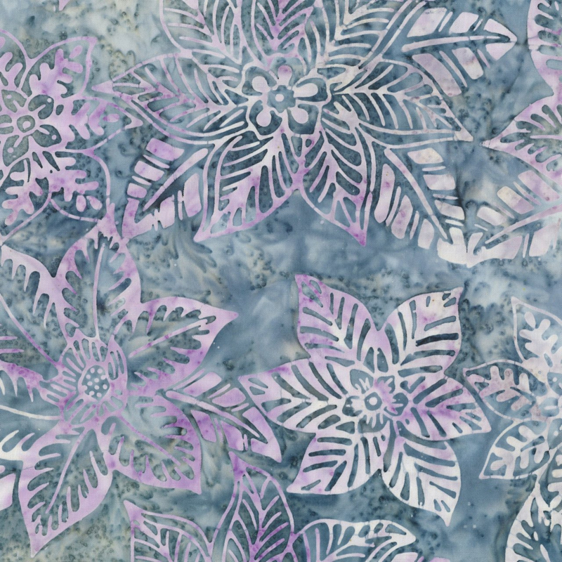 Batikstof met een herhalend floral silhouette dessin. De grote, stervormige bloemen zijn opgebouwd uit gestileerde bloembladen met opengewerkte details, waardoor het patroon duidelijk aanwezig is maar toch luchtig blijft. Het dessin is gelijkmatig verdeeld en vormt een rustig geheel over de stof.