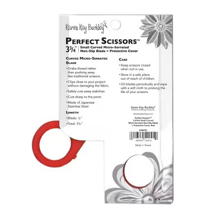 - Dit rode schaartje is 3 3/4 inch en heeft een opwaarts gebogen punt. Daarmee kun je jouw draad dicht bij de stof afknippen zonder het gevaar in je stof te knippen.
