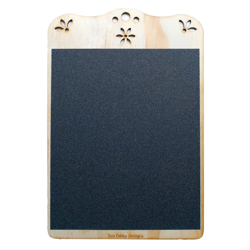 Sue Daley - Sandpaper BoardHet Sandpaper Board van Sue Daley is een handig hulpmiddel bij applicatiewerk. Het bord heeft een oppervlak met fijne schuurstructuur waardoor stof licht blijft liggen en niet gemakkelijk verschuift tijdens het werken.