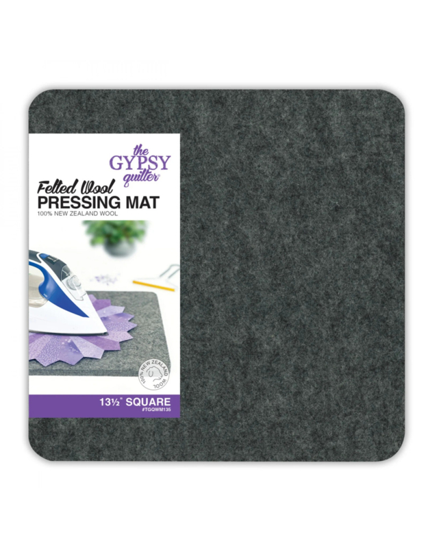 Felted Wool Pressing Mat 13,5 inch squareSuperhandige persmat van 100% gevilte wol met een hoge dichtheid. De wol houdt warmte vast rond naden en steken, waardoor beide zijden van een blok tegelijk worden geperst. De natuurlijke textuur van de wol voorkomt dat stof…